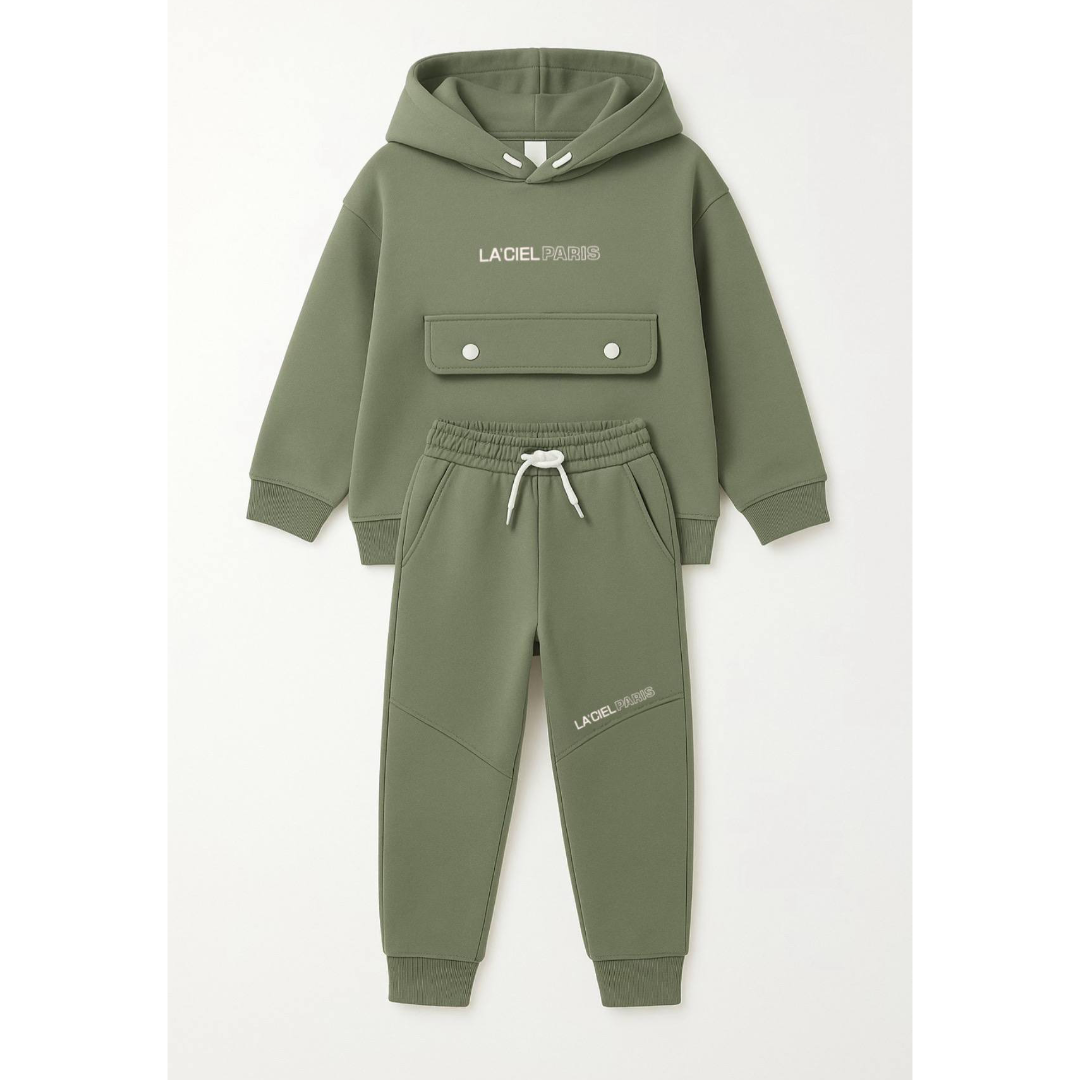 6-14 yaş arası çocuklar için tasarlanan bu yeşil eşofman takımı, kapüşonlu üstü ve rahat kesimiyle günlük aktivitelerde maksimum konfor sunar. Kanguru cep detaylarıyla hem şık hem de kullanışlı bir tasarım.